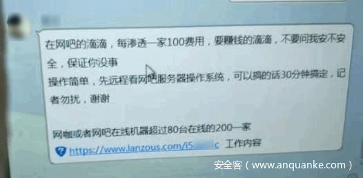同时,为了拓展犯罪行径,作案人员在进行线上招募时,主要通过在社交软件上发布一些诱人的“小广告”,来吸引一些想赚外快的代理人员,帮助他们完成网吧攻击木马的投放。