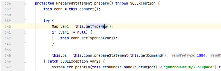 有三个方法调用了connect方法,分别为prepare、getDatabaseMetaData和setAutoCommit方法,逐一分析。
