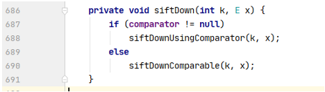 这里有个对于comparator的判定,我们暂时不考虑comparator的值是什么,接下来会使用到,我们先跟进siftDownUsingComparator()方法。