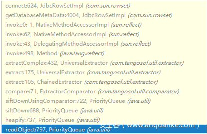 可以看到,this.m_extractor的值是与传入的extractor有关的。这里需要构造this.m_extractor为ChainedExtractor,才可以调用ChainedExtractor的extract()方法实现串接extract()调用。因此,首先需要构造这样一个PriorityQueue对象: