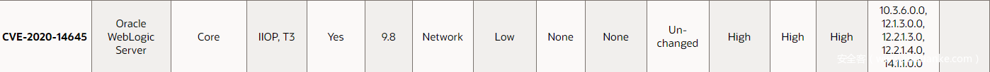Oracle七月发布的安全更新中,包含了一个Weblogic的反序列化RCE漏洞,编号CVE-2020-14645,CVS评分9.8。