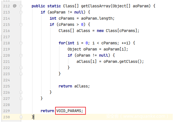 可以看到第477行可以获取任意方法,但是要进入if语句,得先使fExactMatch为true,fStatic为false。可以看到fStatic是我们可控的,而fExactMatch默认为true,只要没进入for循环即可保持true不变,使cParams为空即aclzParam为空的Class数组即可,此处aclzParam从getClassArray()方法获取。