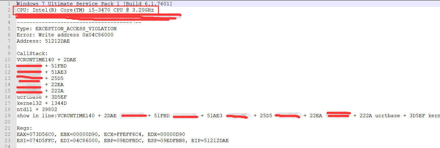 2.1 step1:看一下异常记录,如下,为了规避具体哪款软件触发的crash,这里隐藏掉相关信息,包括进程的各个模块名,代之以AppModule,AppExe这样的名字;