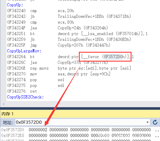 下边我们的任务显然就是来看看这个VCRUNTIME140!_favor的值是多少了;如下: