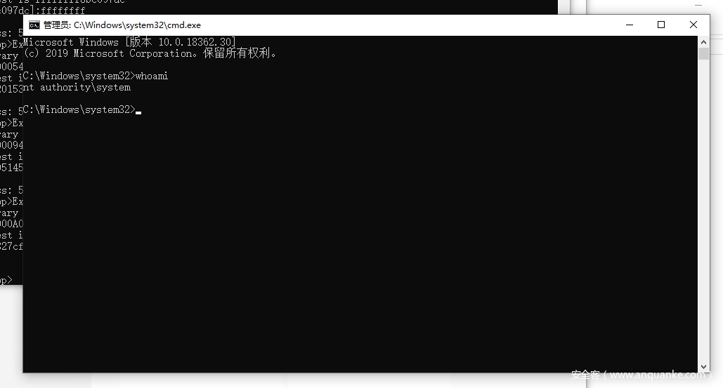 在之前HEVD的练习中,因为拷贝了TOKEN,所以发起攻击的r3进程的用户就被当成了system,所以直接在exp中创建cmd进程即可。不过这次的攻击的token是原先用户的token,至少用whoami看起来并不是system。不过这里为了有system权限的cmd也很简单,我们只要向system用户创建的进程(比方说,pid=4的system进程)远程注入用于创建cmd的shellcode即可~