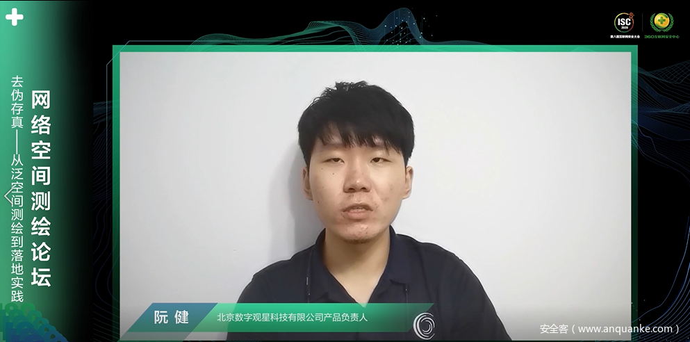 来自数字观星的产品负责人阮健,带来了关于网络空间测绘现状、泛空间测绘到落地实践、网络空间测绘未来发展趋势的思考与分享。