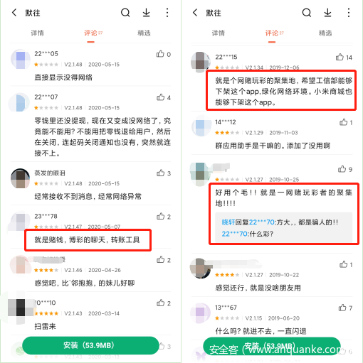 此次案件中提及的“默往”APP,通过应用商店内用户的评论,可以看出此类软件已逐渐被黑灰产盯上,成为其实施诈骗的“帮凶”。