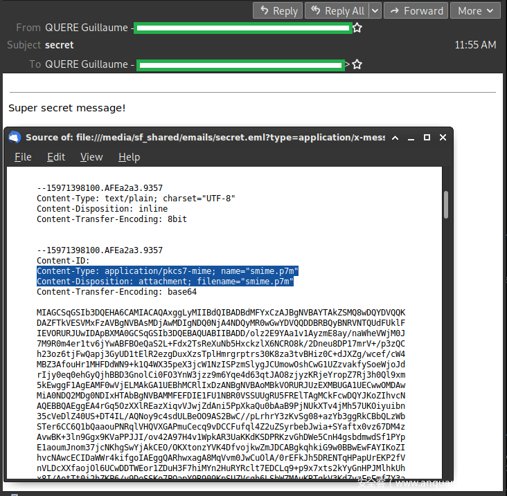 echo "MIAGCSqGSIb3DQEHAqCAMIACAQExCzAJBgUrDgMCGgUAMIAGCSqGSIb3DQEHAaCAJIAEggLWQ29udGVudC1UeXBlOiBtdWx0aXBhcnQvYWx0ZXJuYXRpdmU7DQoJYm91bmRhcnk9Ii0tLS09X05leHRQYXJ0XzAwMF8wMDE1XzAxRDY2RkQ2LjUyQjVGN0YwIg0KDQpUaGlzIGlzIGEgbXVsdGlwYXJ0IG1lc3NhZ2UgaW4gTUlNRSBmb3JtYXQuDQoNCi0tLS0tLT1fTmV4dFBhcnRfMDAwXzAwMTVfMDFENjZGRDYuNTJCNUY3RjANCkNvbnRlbnQtVHlwZTogdGV4dC9wbGFpbjsNCgljaGFyc2V0PSJpc28tODg1OS0xIg0KQ29udGVudC1UcmFuc2Zlci1FbmNvZGluZzogOGJpdA0KDQpTdXBlciBzZWNyZXQgbWVzc2FnZSENCg0KDQoNCg0KDQoNCl" | base64 -d