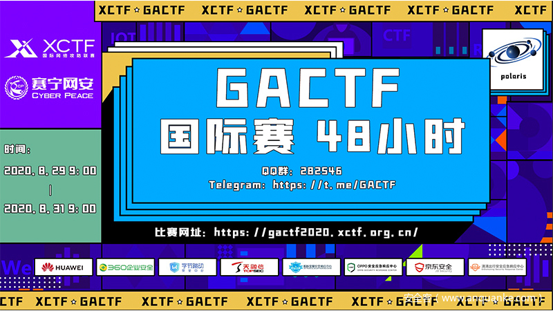 本届GACTF是由XCTF联赛的合作单位星盟安全团队组织,由赛宁网安提供技术支持。作为第六届XCTF国际联赛的分站赛,本次比赛将采用在线网络安全夺旗挑战赛的形式,面向全球开放。