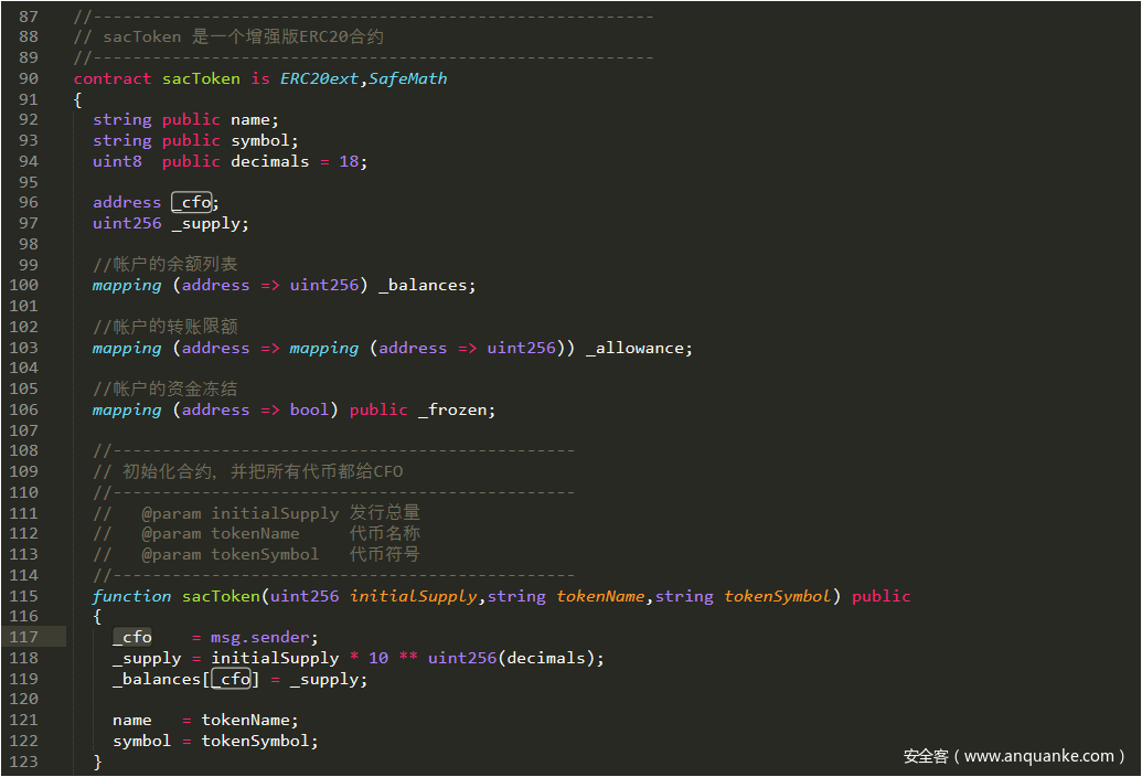而随着智能合约普及,合约的安全问题也引起了众多合约开发者和安全研究人员关注,比较典型的就是随之建立的DASP Top10( https://www.dasp.co/)。近期,笔者在对一些智能合约进行代码审计时发现有很多合约存在可疑的后门漏洞,具备特殊权限的地址用户(合约的owner)或合约账号具备控制用户资产的权限,可对任意用户的资产进行销毁操作,本文将对此进行简要分析。近期,笔者在对一些智能合约进行代码审计时发现有很多合约存在可疑的后门漏洞,具备特殊权限的地址用户(合约的owner)或合约账号具备控制用户资产的权限,可对任意用户的资产进行销毁操作,本文将对此进行简要分析。