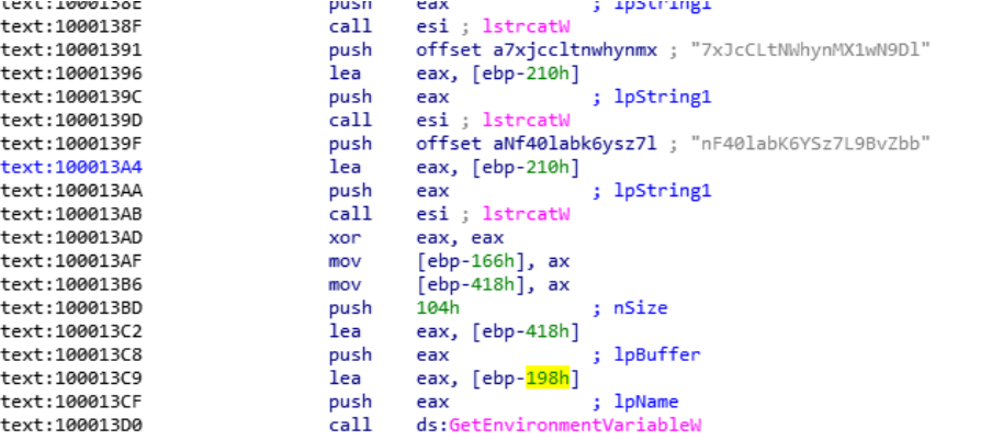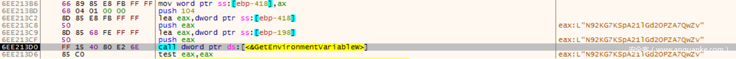 接着程序通过GetEnvironmentVariableW获取指定的环境变量: