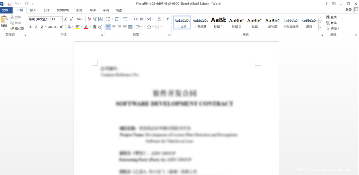File-aff94b08-6d9f-48c5-9900-5bee8ef5ab33.docx是模糊⽂档⽤于迷惑受害者,⽂档内容如下: