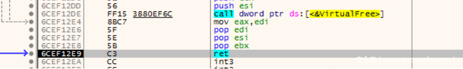 ⽂档打开之后,返回回去释放内存,然后执⾏ret ,sub_10001270函数执⾏完毕