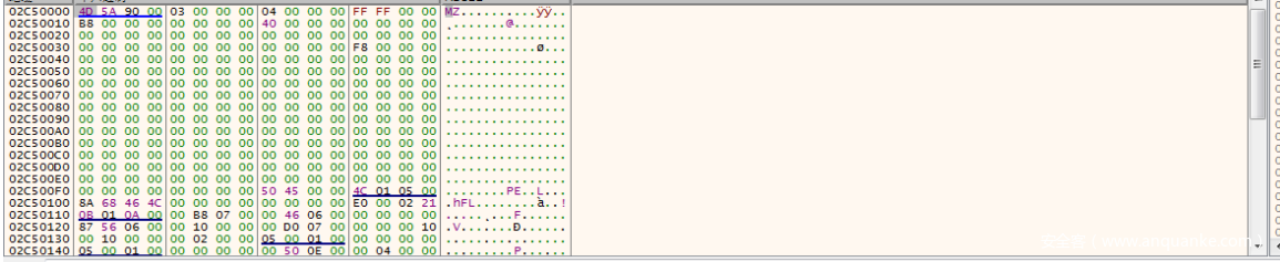 然后进⾏VirtualAlloc分配内存空间