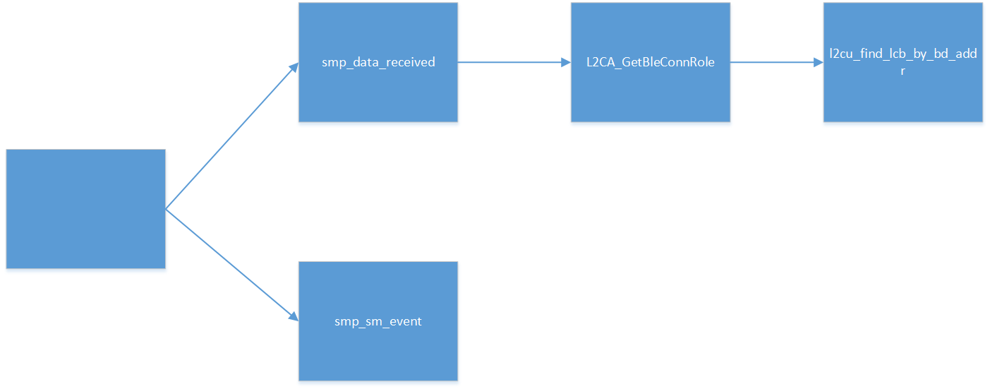 传入的SMP数据包由smp_data_received()函数[ platform / system / bt / stack / smp / smp_l2c.cc ]处理。如果 通过包含SMP_OPCODE_PAIRING_REQ(0x01)命令的L2CAP_SMP_CID固定通道 接收到输入SMP数据包,则将到达以下代码: