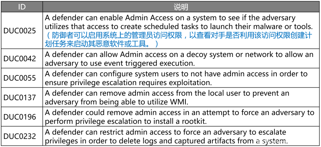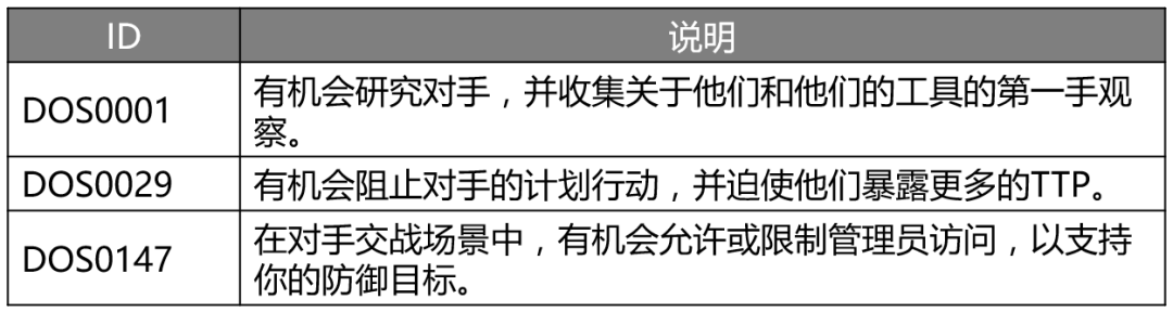 - 用例:可能应用的用例,是对防御者如何利用对手行动所呈现的机会的高层级描述。