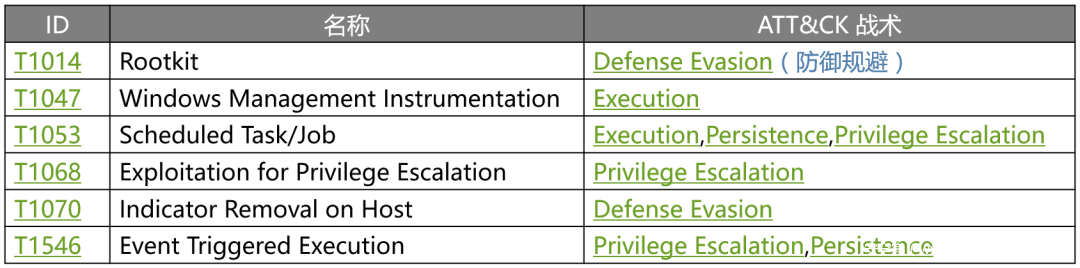 表13-到ATT&CK“防御规避”战术的详细映射(截图不全)
