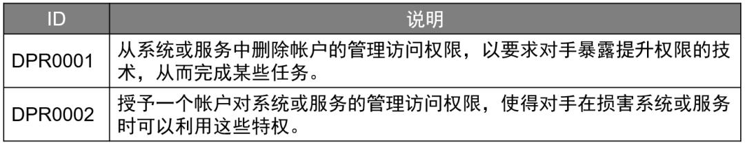 上表中第1列所引用的技术,均来自后文的表5。如果点击上表中第1列的特定技术,比如第一个DTE0001-Admin Access(管理员访问)技术,则会访问到该项具体技术的页面,即下一节的表6~表10。