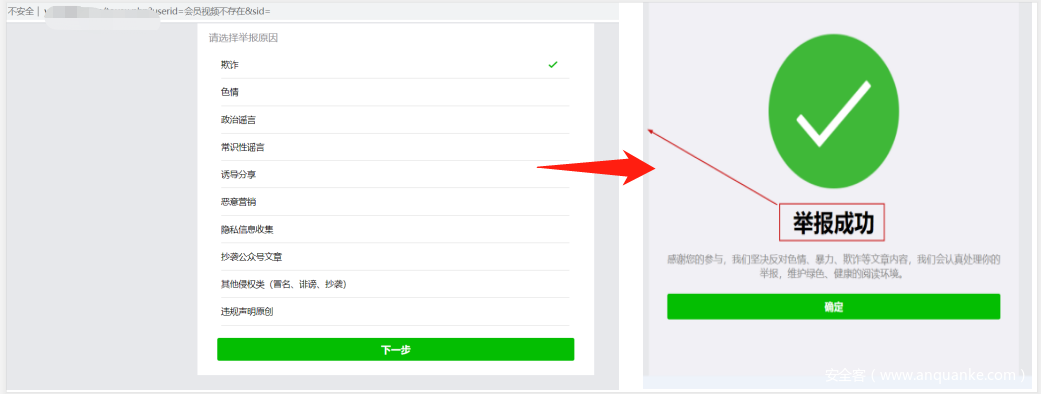 屏蔽举报,即在网站内伪造举报页面,造成假举报。