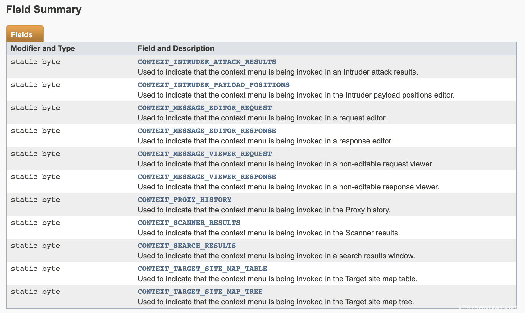 - invocation – 一个实现 IMessageEditorTabFactory 接口的对象, 通过此对象可以获取上下文菜单调用的细节。
