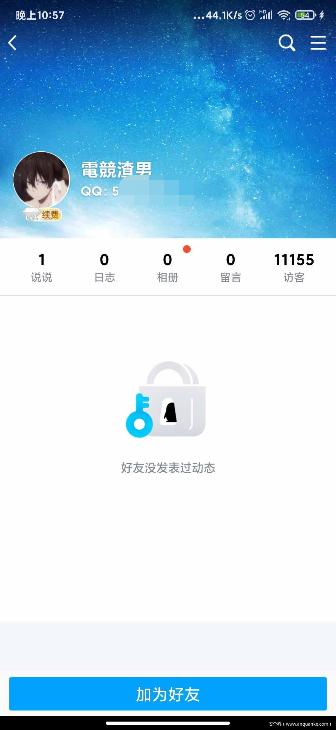 居然还在页面上留下了自己的QQ号,瞬间,该QQ空间的访问量就达到了1w+