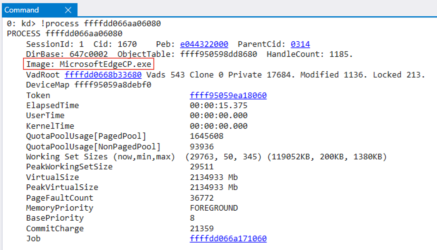 让我们研究一下启用ACG的Edge content进程(MicrosoftEdgeCP.exe))。