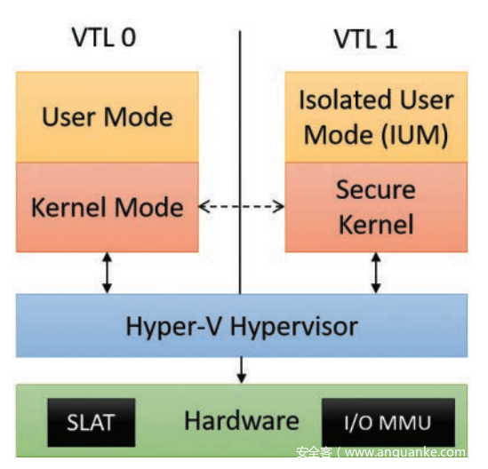 VTLs或虚拟信任级别阻止在一个VTL中运行的进程访问另一个VTL的资源。这是因为位于普通内核中的资源实际上是由一个更“可信”的边界VTL 1管理的。