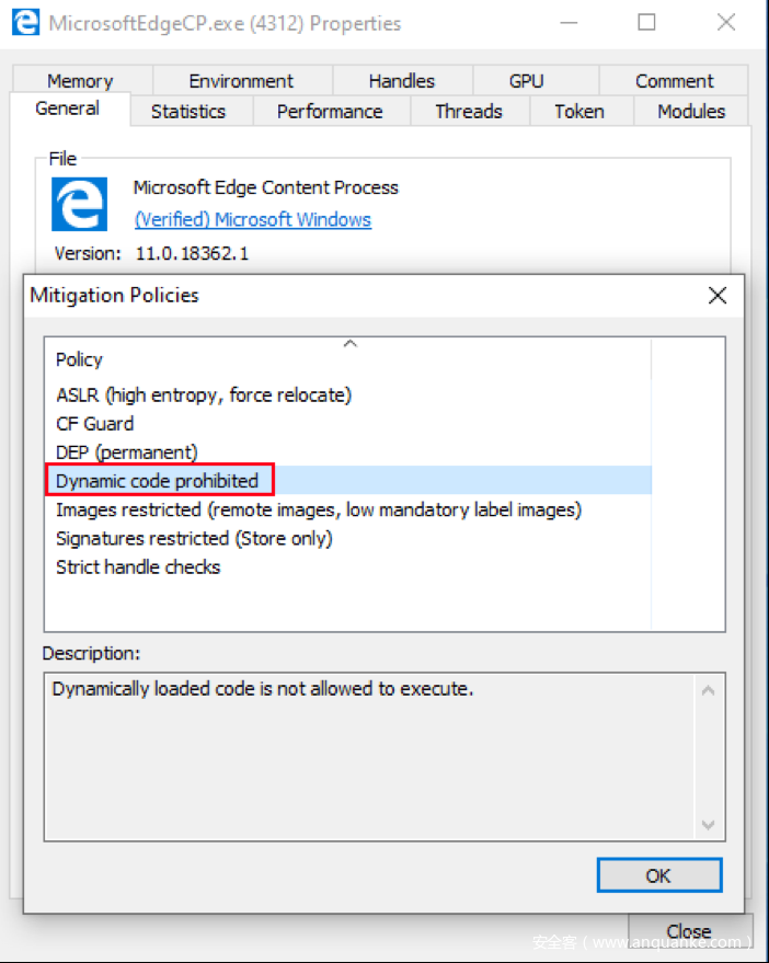 此时,如果为进程动态创建了可执行代码,并且设置了此标志,那么函数检查将返回STATUS_DYNAMIC_CODE_BLOCKED失败,从而导致崩溃。