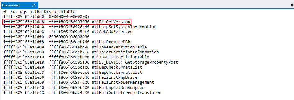 按位检查发生时,仍然允许函数调用发生,即使[nt!HalDispatchTable+0x8]已经被另一个函数覆盖。