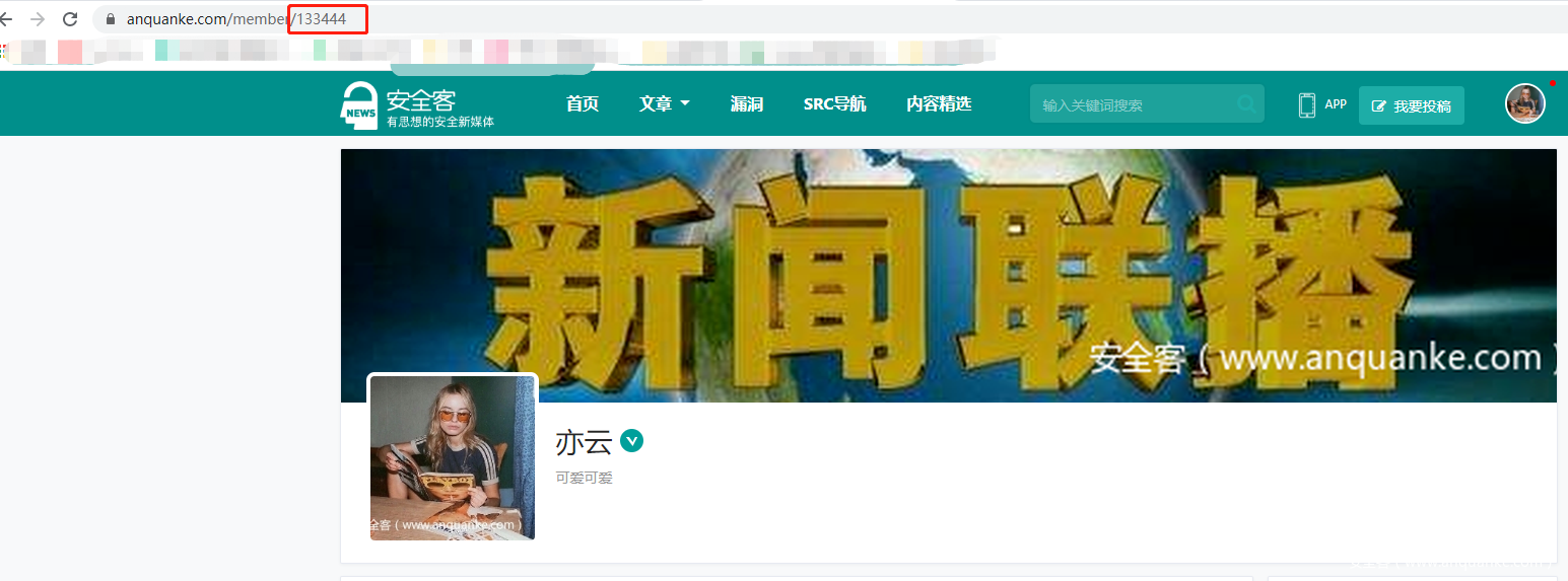 进入【个人主页后】顶部用户链接后6位数字即为您的用户ID;示例ID:133444