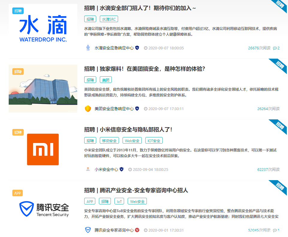 已有众多名企入驻,精准垂直网络安全行业,简历投递成功率upupup!人才招募,等的就是你!真香~