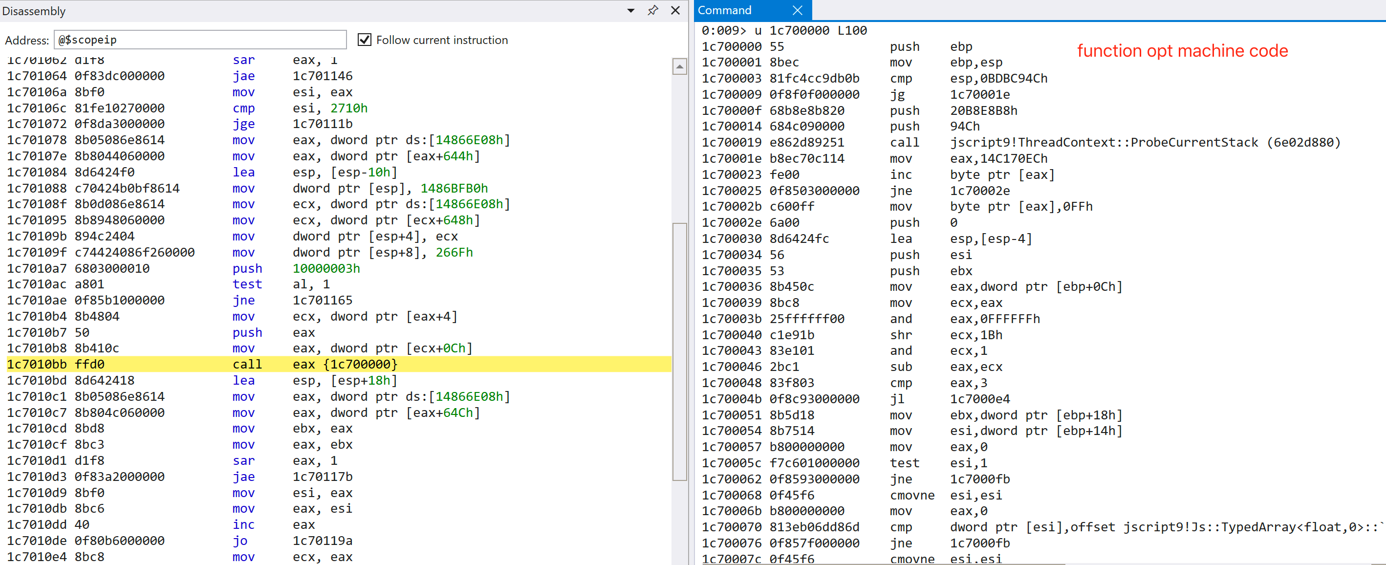 最后,循环体机器码将内部调用opt函数的机器码,如下所示: