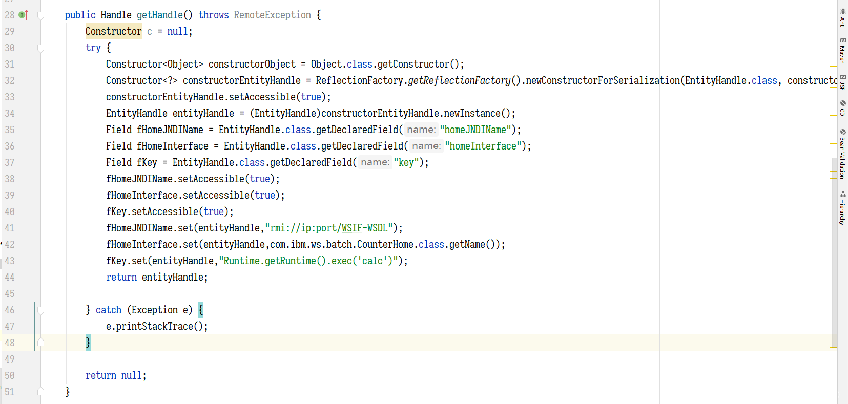 CVE-2020-4450 中的漏洞利用链其中一个要点就是利用其动态调用 java 的特性,绕过对调用方法的限制,我们下面参考官网提供的 sample 中的案例写个小 demo,看下这款框架的功能底层是怎么实现的,以及有什么特点。