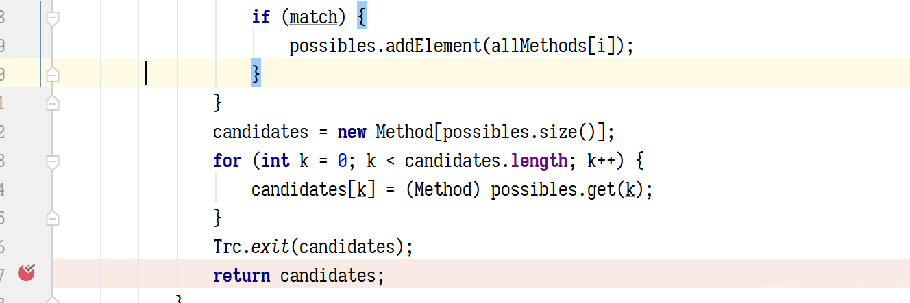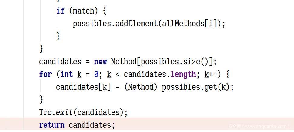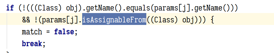 如果参数长度一致,就判断类型,如果遇到一个不一致的类型就继续遍历下一个 operation 如果完全一致就立刻返回这个 operation ,如果 operation 中定义的参数类型,是正在调用的方法的参数类型的子类的话也行,但是并没有限制返回值。