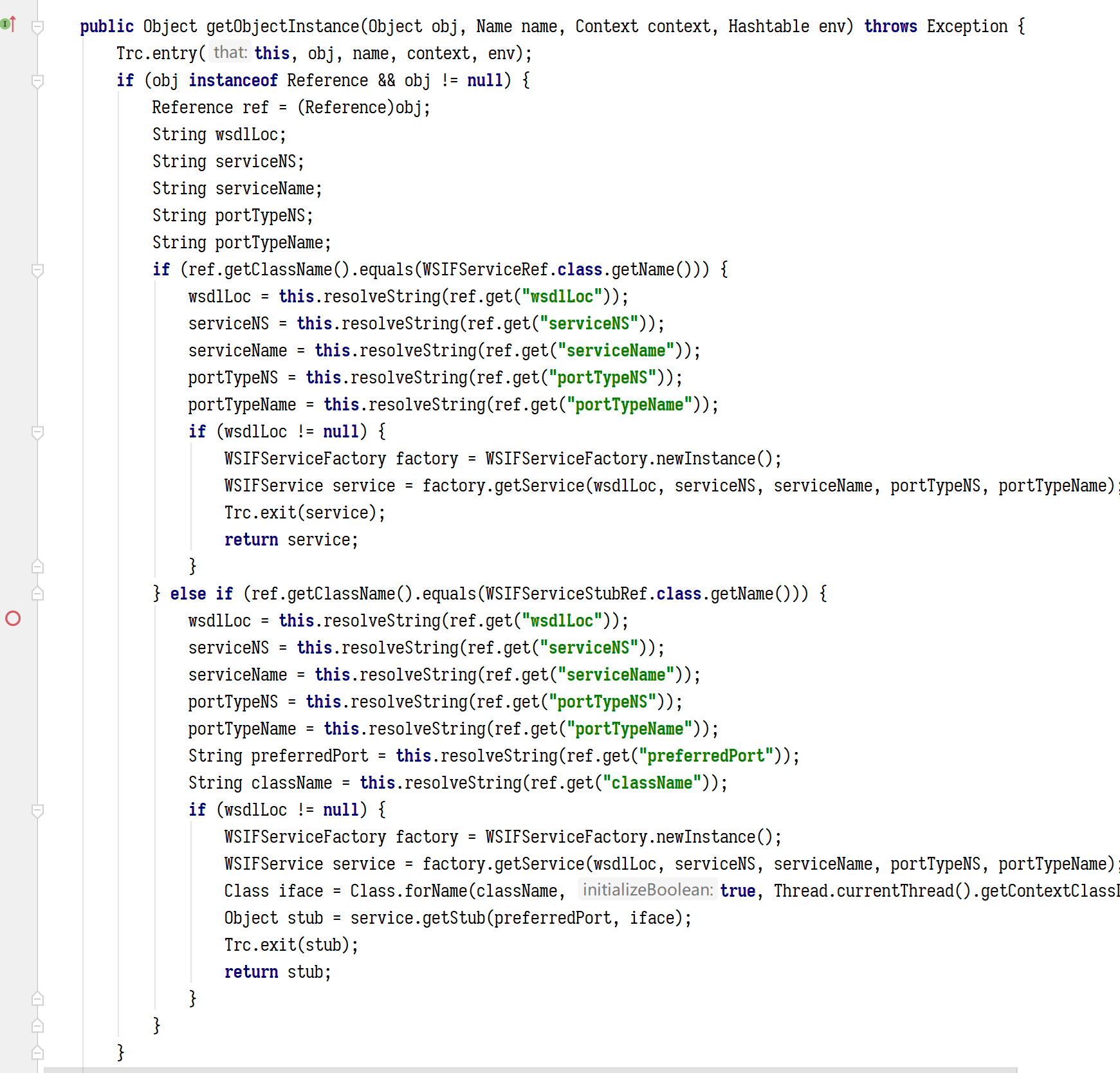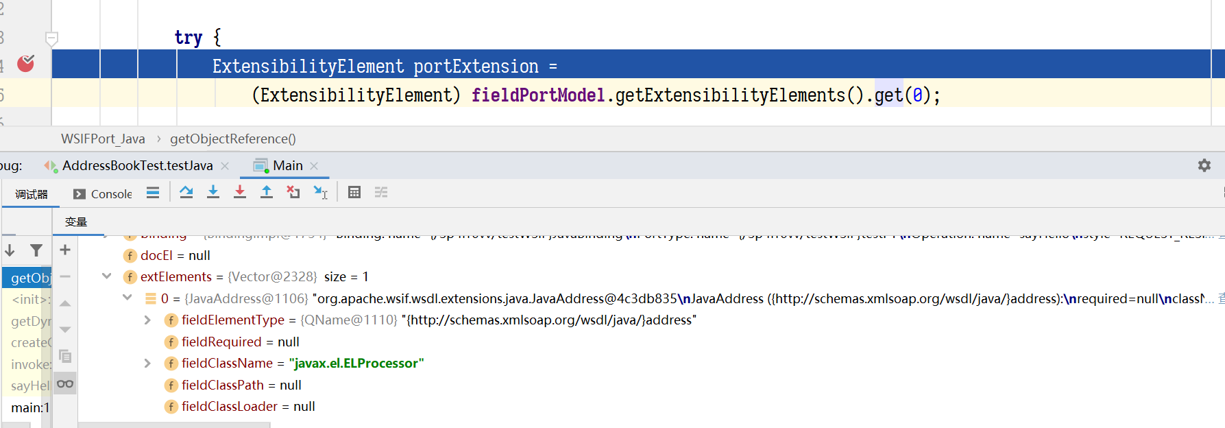 跟进断点这行,会看到 WSIF 会实例化我们在 WSDL<java:address className=”javax.el.ELProcessor”/> 这个标签那里指定的className,然后返回其所有的方法
