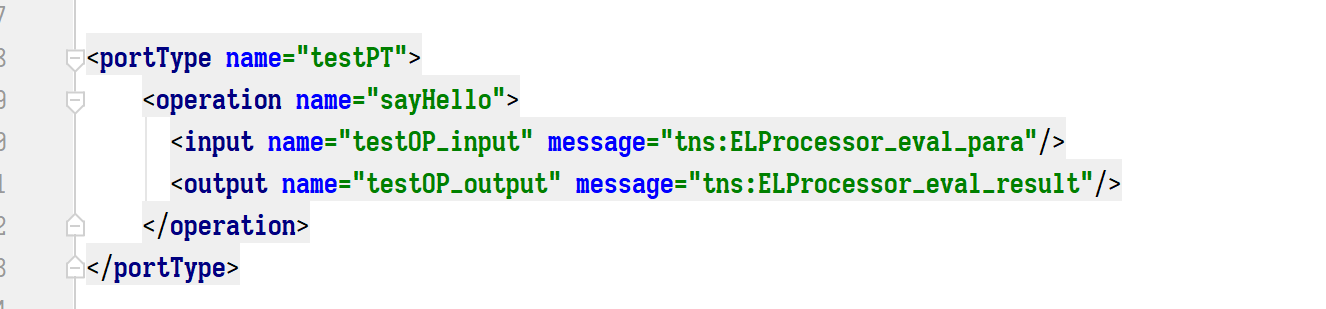 portType元素定义 operation 子节点其中该子节点中的 name 与接口名称。
