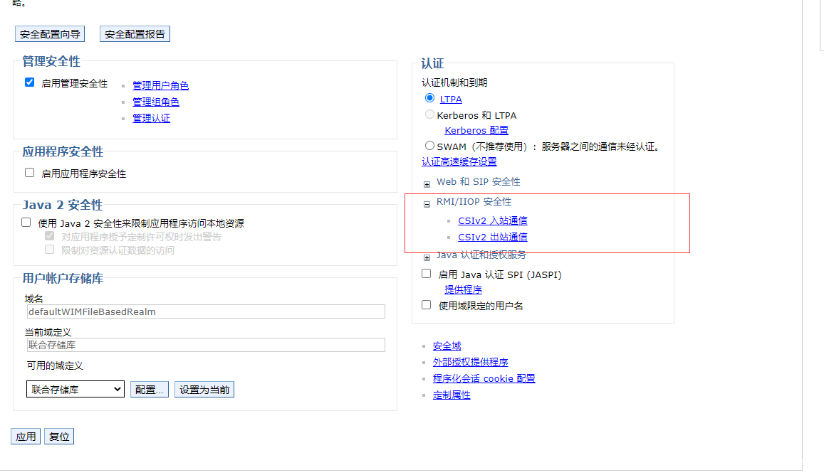 WebSphere 默认情况下,2809、9100IIOP协议交互的明文端口,分别对应 CORBAbootstrapNamingService;而 9402、9403 则为 iiopssl 端口,在默认配置情况下访问 WebSpereNamingService 是会走 9403 的SSL 端口,为了聚焦漏洞,我们可以先在 Web 控制台上手动关闭 SSL。