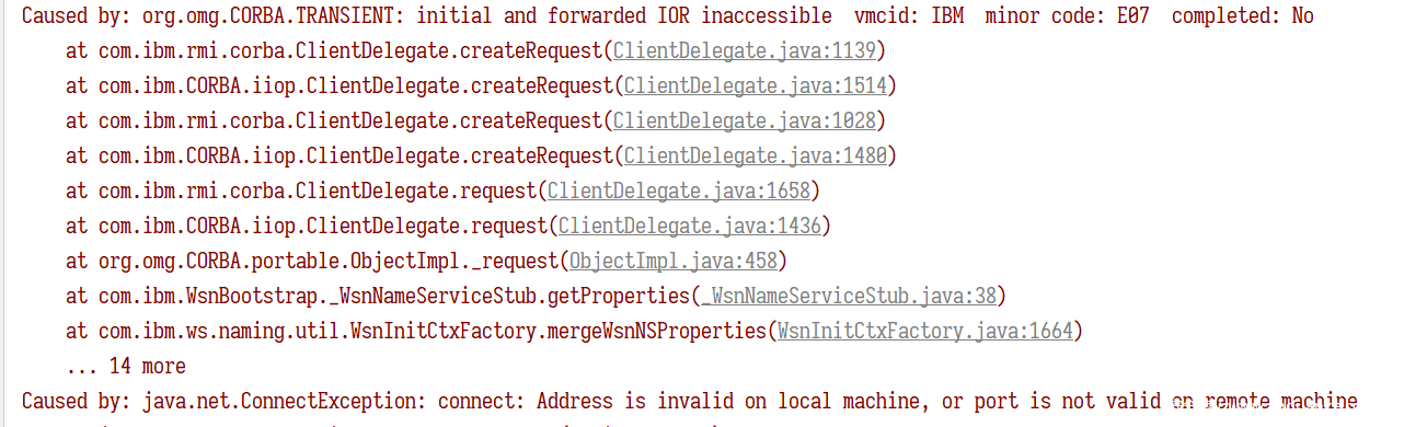 如果 BootStrap 返回的 IOR 只带有 Host ,端口为 0,但是在返回的 IOR 中会有 SSL 的相关内容,则说明是要走 SSL 端口的,如果我们的客户端没配置 SSL 属性的话,那他是不会走 SSL 连接的,而是直接连接 host:0,肯定连不上