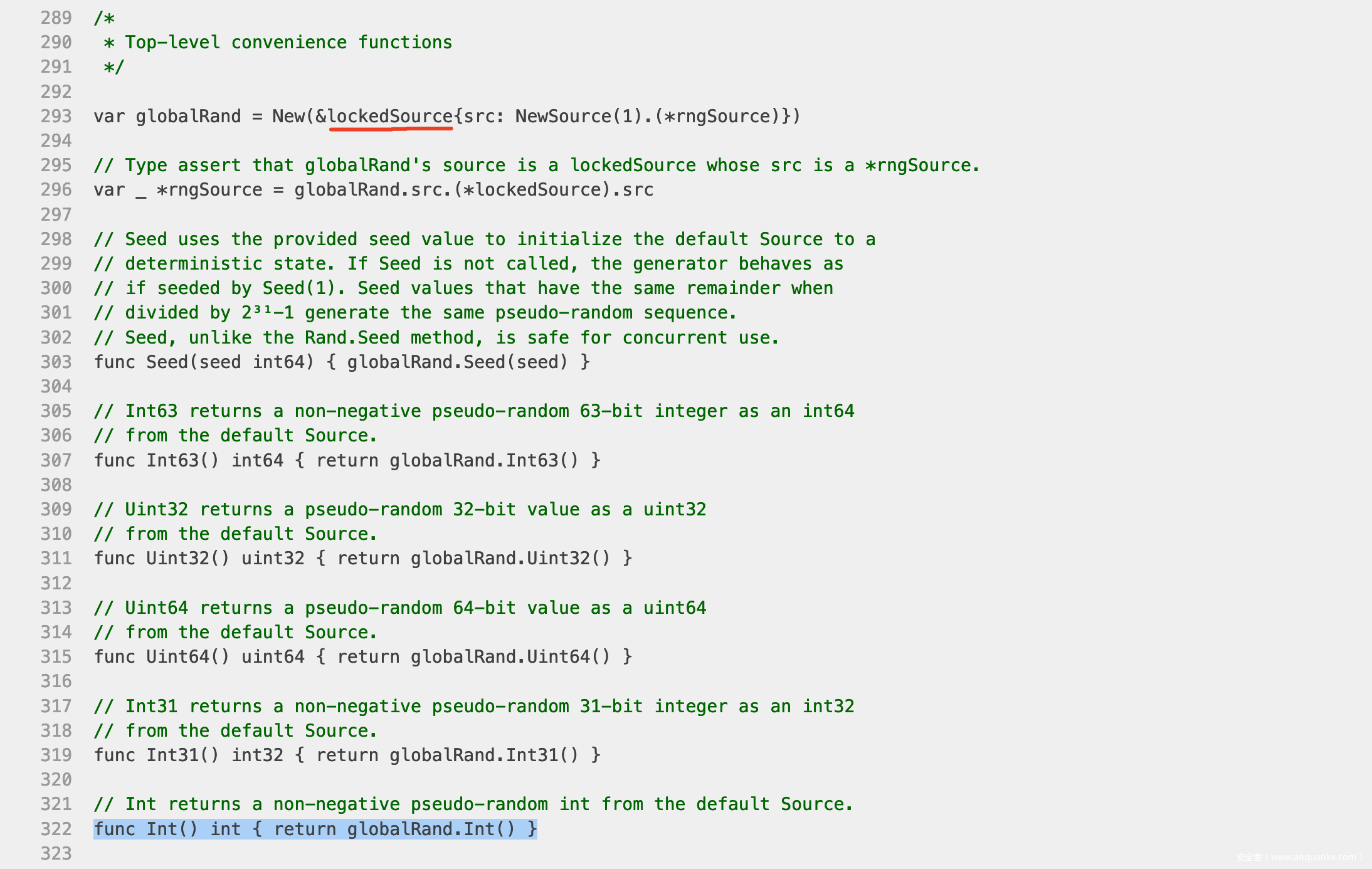 通过分析rand.Intn()的源码,可见,在”math/rand” 包中,如果没有设置随机种子, Int() 函数自己初始化了一个 lockedSource 后产生伪随机数,并且初始化时随机种子被设置为1。因此不管重复执行多少次代码,每次随机种子都是固定值,输出的伪随机数数列也就固定了。所以如果能猜测到程序使用的初值(种子),那么就可以生成同一数序的伪随机数。