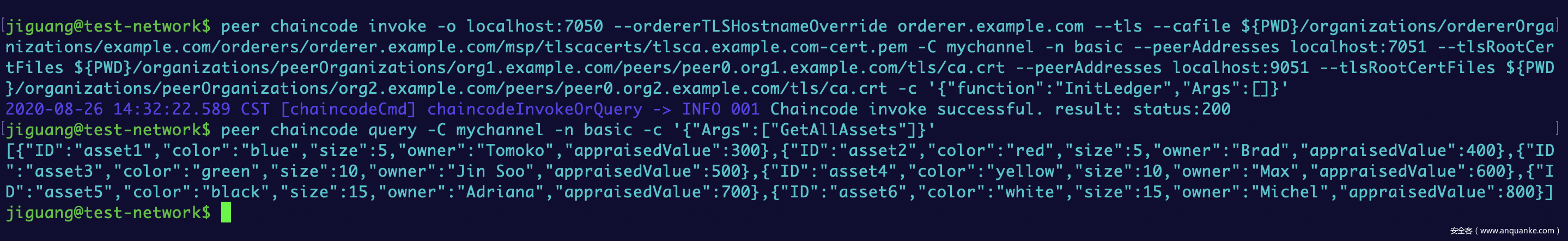 可以通过官方 Fabric-samples 部署test-network,需要注意的是国内网络环境对于Go编译下载第三方依赖可能出现网络超时,可以参考 goproxy.cn 解决,成功部署后如下图: