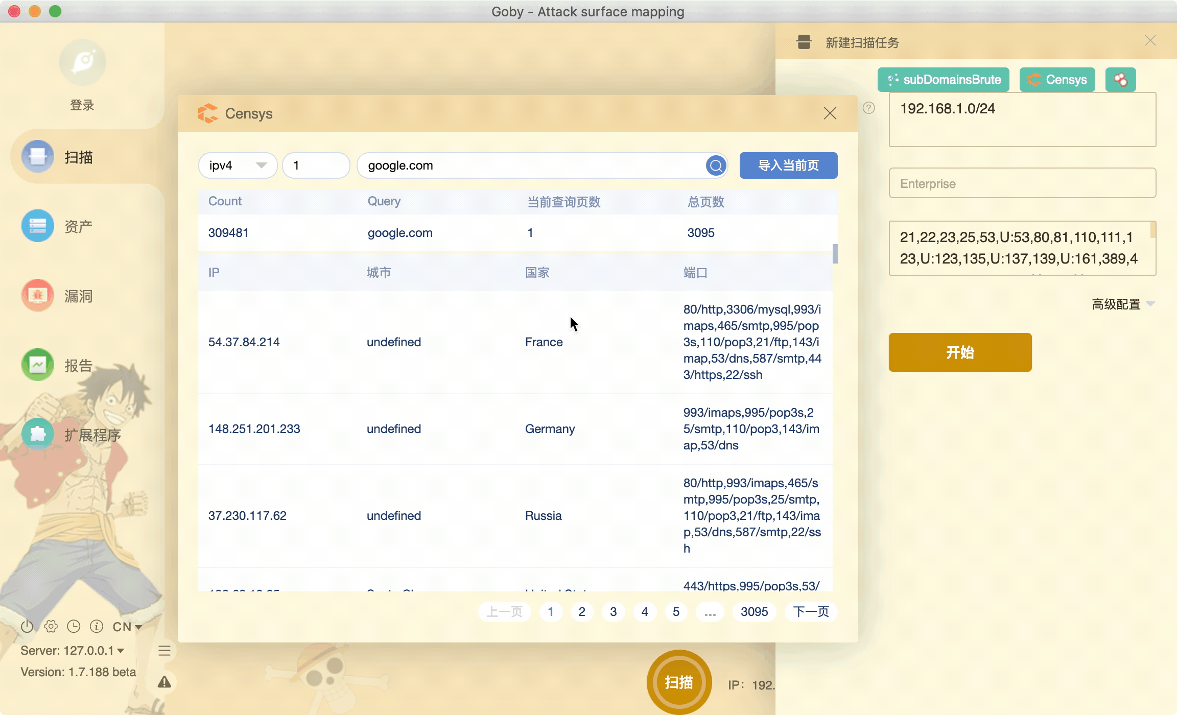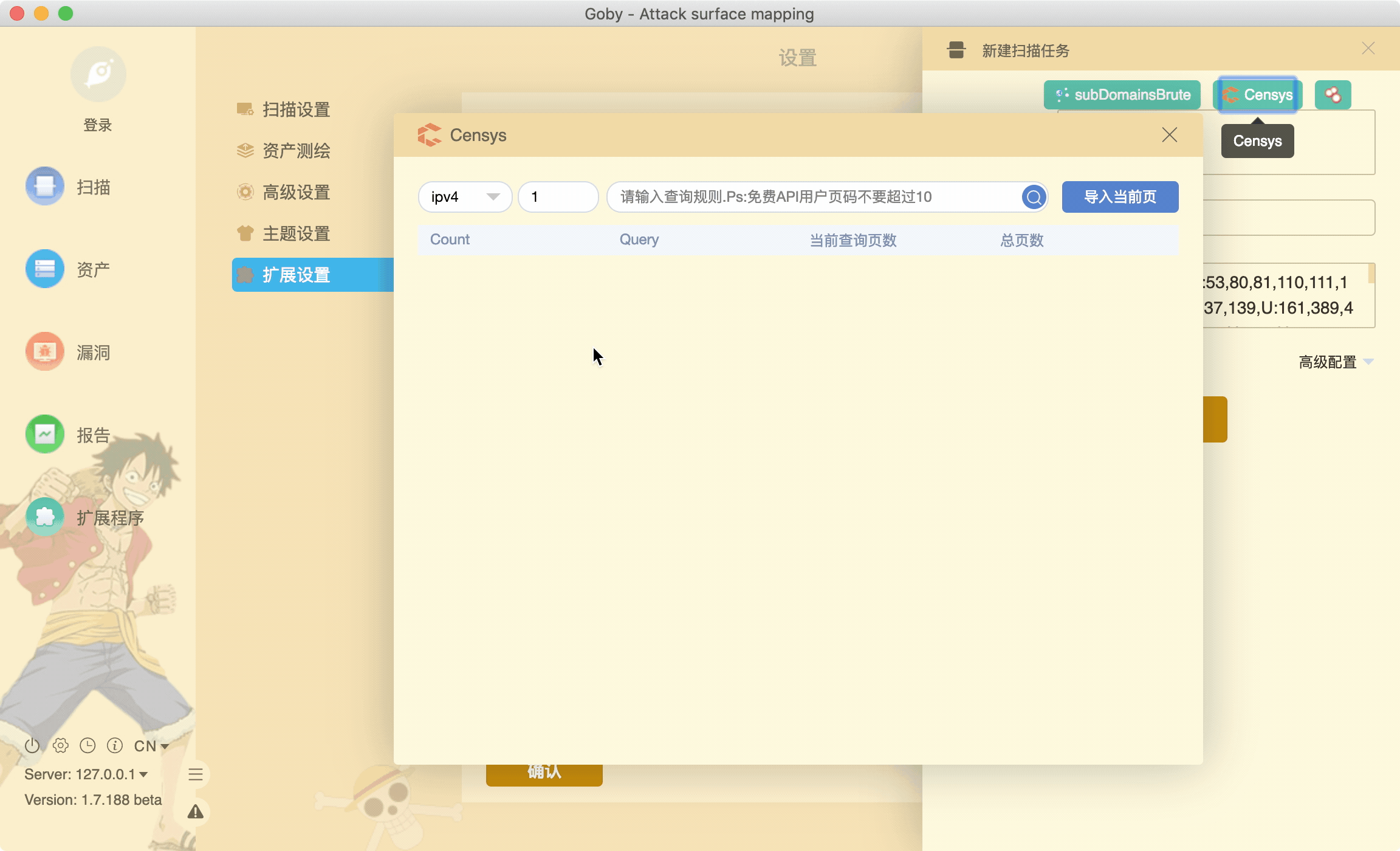 前言:用Goby也有一段时间了,挺喜欢Goby的界面,而且个人感觉Goby的插件也挺有趣,在看见github上有几个插件需求后,也想给社区提点东西,就有了本次的Censys插件。由于没怎么用过Censys(只是挺早之前注册过),所以大家有什么好的建议也可以提出来。以下是Censys官方介绍:Censys是一款用以搜索联网设备信息的新型搜索引擎,安全专家可以使用它来评估他们实现方案的安全性,而黑客则可以使用它作为前期侦查攻击目标、收集目标信息的强大利器。
