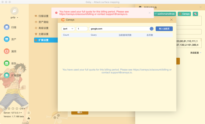 连续导入需要设置type为0,但是type选0就会把本地的IP也加进去,选1的话更不行了。于是凑出了以下代码,第一次先执行一次覆盖,然后再追加后续的,此操作只需要执行一次就好,后面的就是正常的追加操作了,还需要设置不自动关闭窗口// goby.closeIframeDia(),至此,一个符合我口味的Censys插件就完成了~