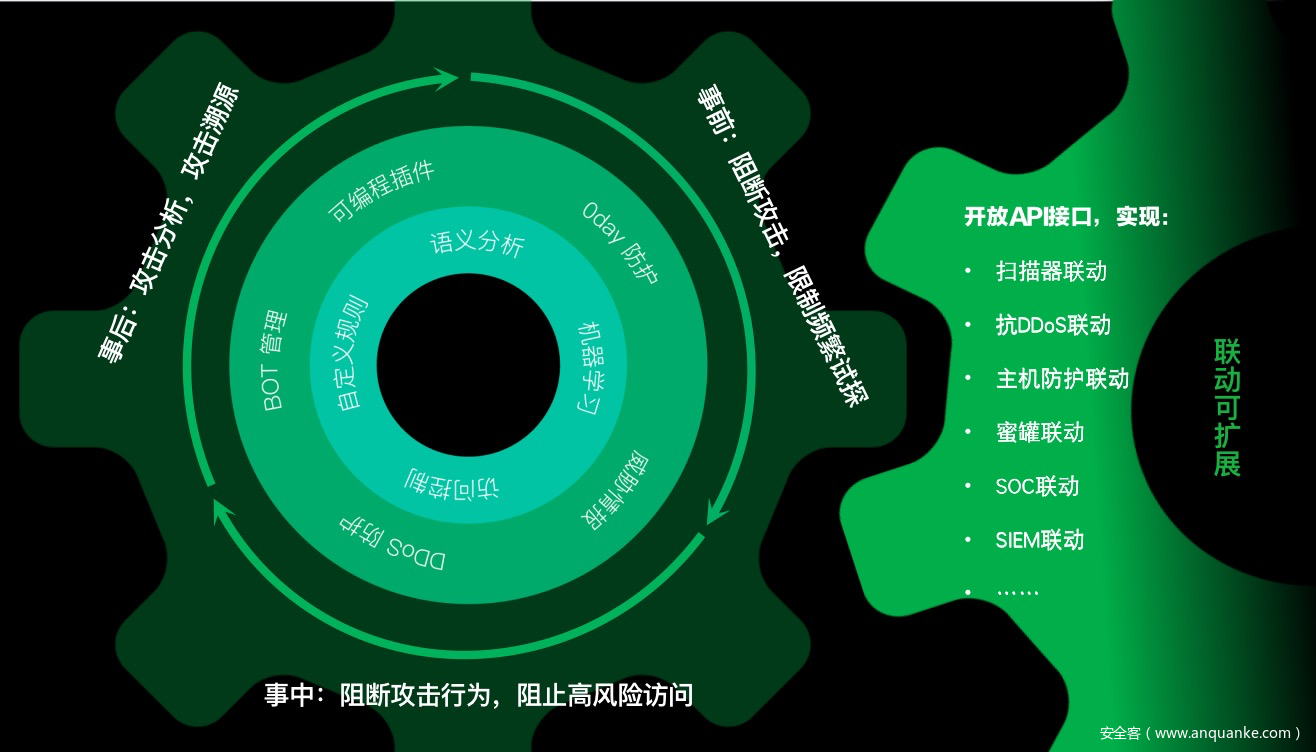 - 细粒度检测,面对巨量交互数据,可抵御Web攻击压力,防止风险于无形中入侵。