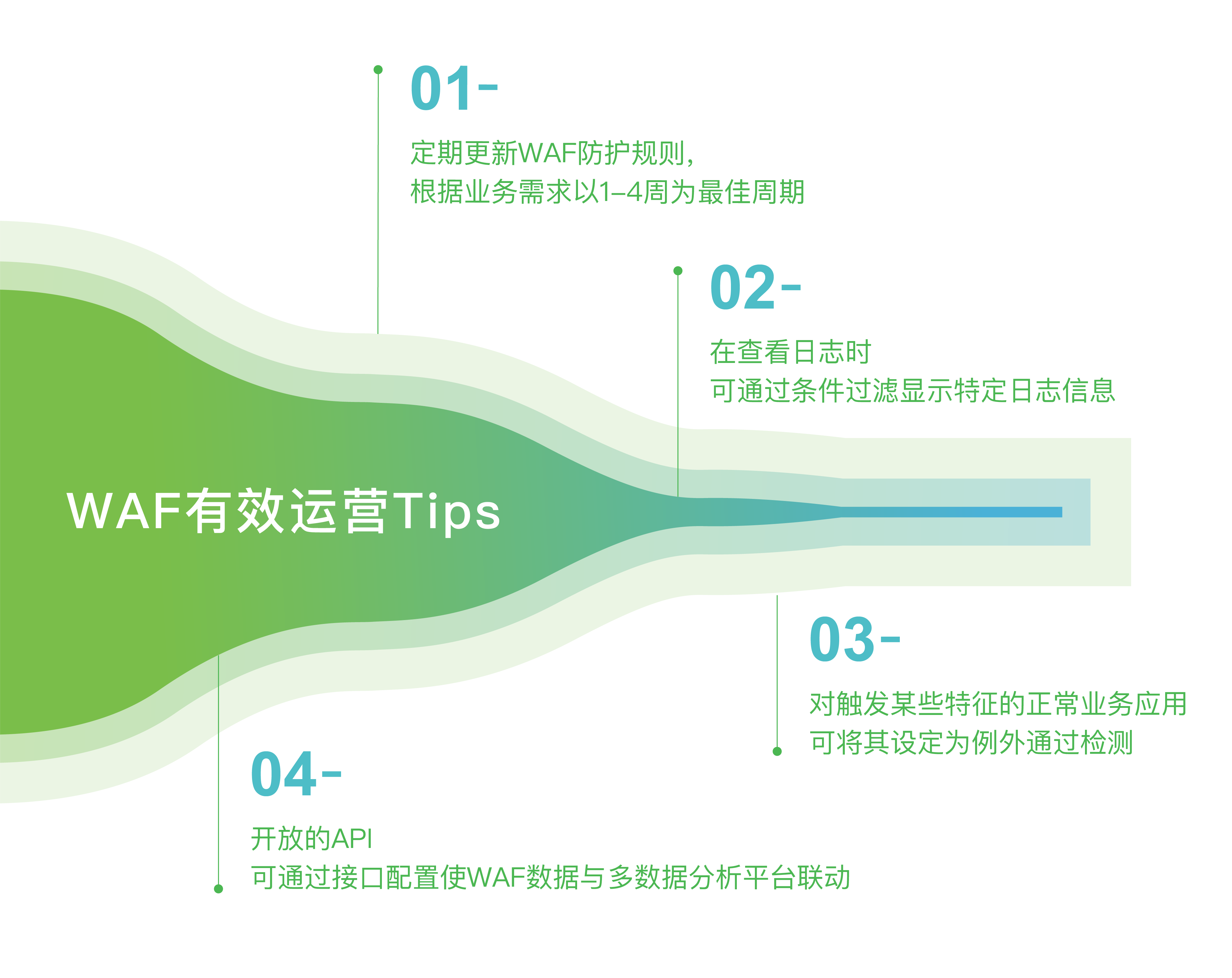 - 简易运维和日志数据的综合分析,让部署后的WAF实际运营起来。