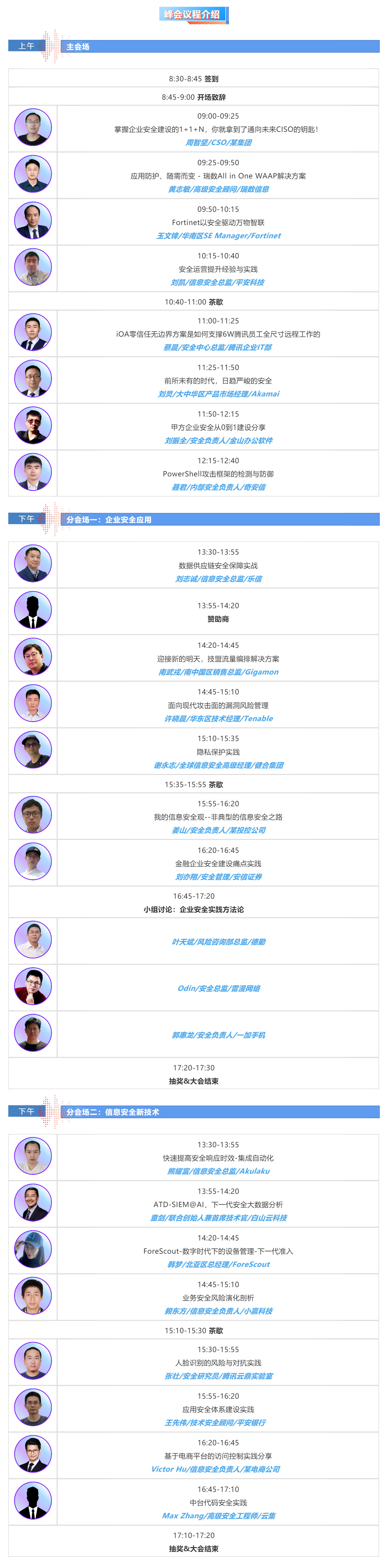 “EISS企业信息安全峰会”始办于2016年,由安世加(原安全+)主办,并得到众多行业协会、机构以及媒体等共同参与支持。大会以“直面信息安全挑战,创造最佳实践”为主题,聚焦企业信息安全技术与实践应用等热点话题,致力于推进企业信息安全体系建设、加强企业信息安全管理、助推企业信息安全生态圈的健康发展。