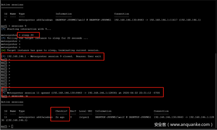 - metasploit-framework的sleep会直接让session处于休眠状态,在UI上表现为session关闭,