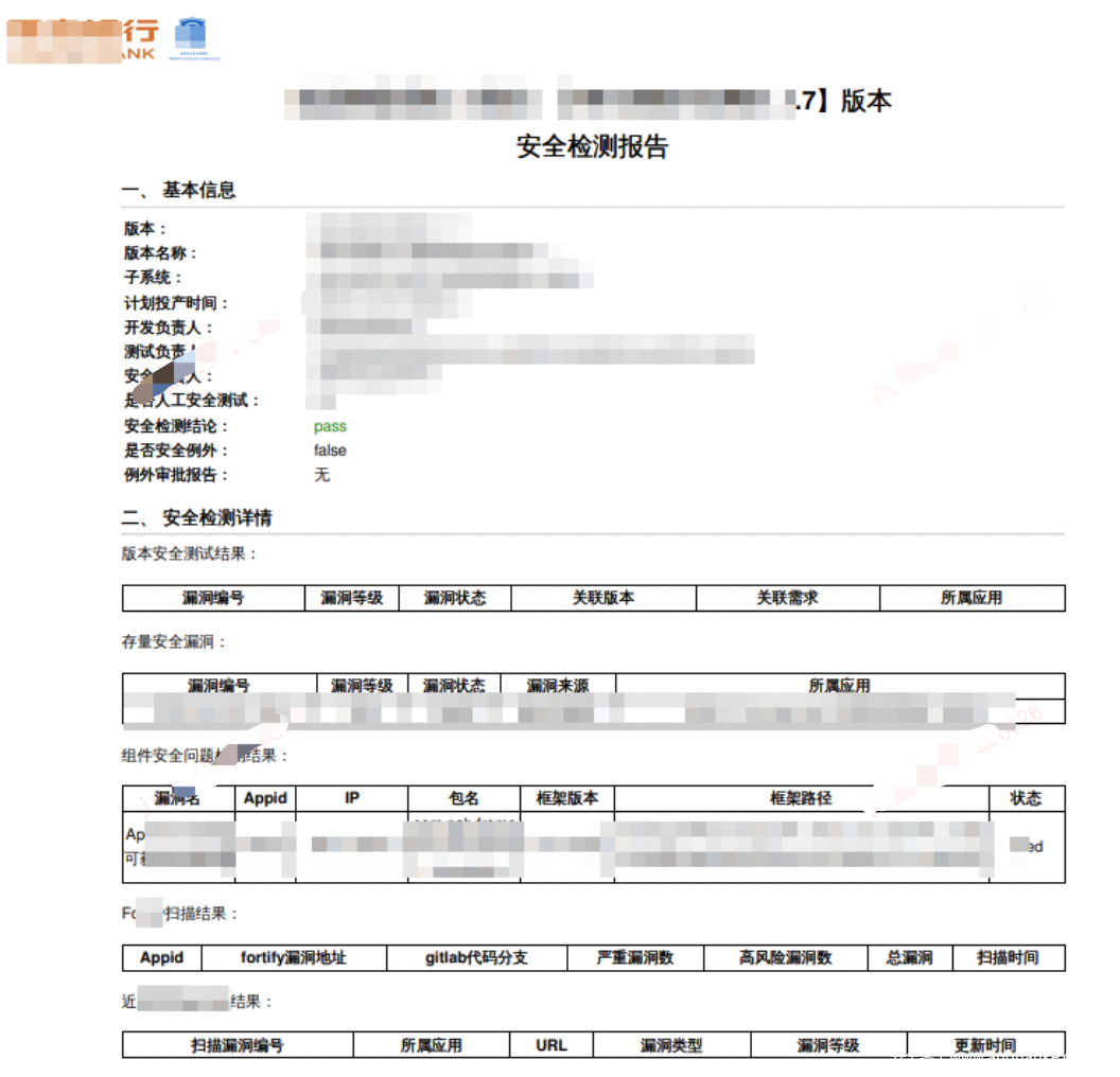 通过检查过程中发现的问题,将检查结果数据跟各纬度的SR/SST/版本对应起来,存入安全运营平台中,这样就形成了版本—风险值的维度,初期我们定义一些简单的卡版规则,对不符合要求的版本卡发布,例如中高危漏洞不可发版,没有接入SSO不允许发版等。在持续建设后期可以根据各类安全规则给出版本的安全评分及安全检查报告,执行更精细的版本安全管控。