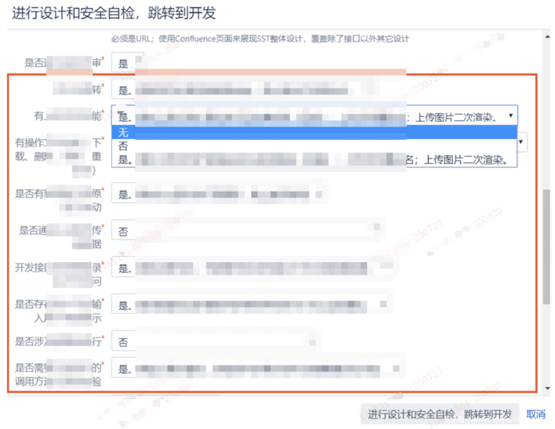 在内网应用需求上提供基于问答式的安全自检解决方案,后期可以做到更加具体细致,对涉及尽可能多的场景抽象出一些需求场景的评审checklist。